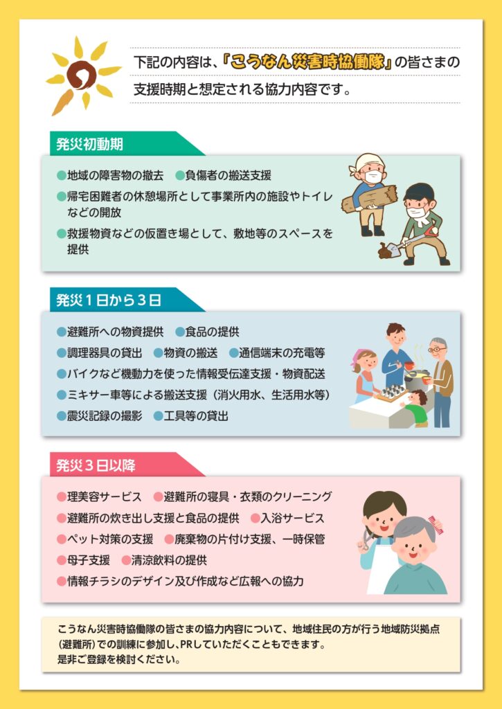 TOP > お知らせ > 「こうなん災害時協同隊」への参加について